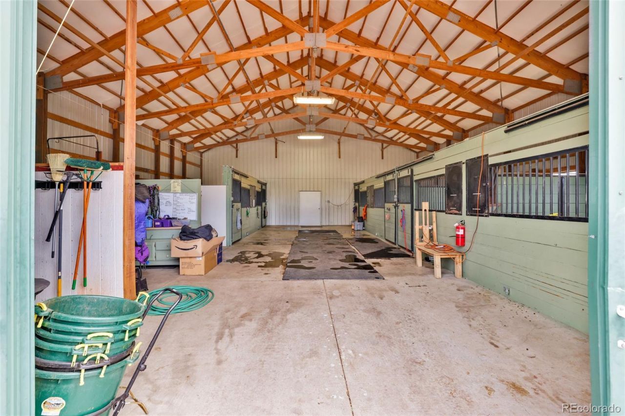 Some properties are places to live. This one is a way of life.Tucked at the end of a quiet cul-de-sac in Elbert County, the Rolling Sky Equine Retreat spans 40 private, fully fenced acres in the heart of Colorados equestrian community. Its a place where the gate closes behind you and the rest of the world disappears, yet it remains just minutes from Elizabeth and within easy reach of Denver and Colorado Springs.The equestrian improvements are thoughtfully designed. A custom Cleary-built barn offers six stalls with automatic waterers and oversized run-ins, while the 220 by 110 foot indoor arena includes additional stalls, a tack room, and room to expand. Both structures provide direct pasture access. The property is well set up for daily use, with fenced grazing pastures, loafing sheds, a large outdoor arena, and established riding areas, along with a wash stall and dedicated tack space.A renovated clubhouse serves as a central gathering space with a full kitchen, open entertaining area, bathrooms, laundry, and a wood-burning oven, creating a welcoming place to gather year-round.The residence is warm and functional, featuring vaulted ceilings, hardwood floors, and two gas fireplaces. A country kitchen anchors the home, while the main-level primary suite, additional bedrooms, and loft provide everyday comfort. The finished walk-out basement offers flexible space for guests, an office, or separate living quarters.Additional improvements include a caretakers residence, Pacific Dome yurts for guests or retreats, a heated RV barn, and an outdoor arena and round pen. A backup generator, chicken coop, and garden gazebo enhance usability.With an Elbert County Commercial Use Permit and a well permit approved for commercial use, the property is well-positioned for boarding, training, clinics, or retreats.A rare offering combining privacy, accessibility, and income potential in a true equestrian setting.